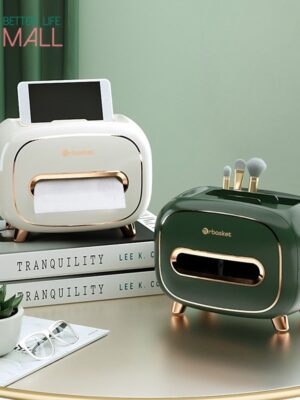Hộp đựng giấy ăn sang trọng để bàn dạng rút có kê điện thoại phong cách bắc âu hiện đại, Hộp khăn giấy 4 ngăn LOTIDA