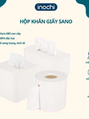 Hộp khăn giấy Inochi – Sano (nắp nhựa) dễ dàng tháo lắp giấy vào trong, chống giòn gãy ố màu