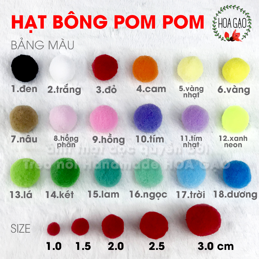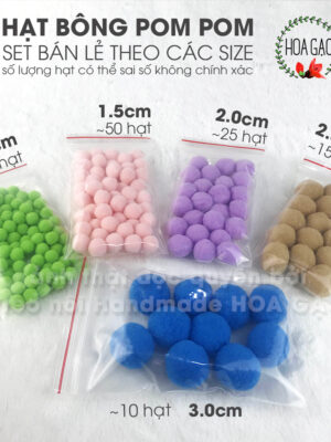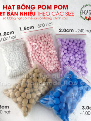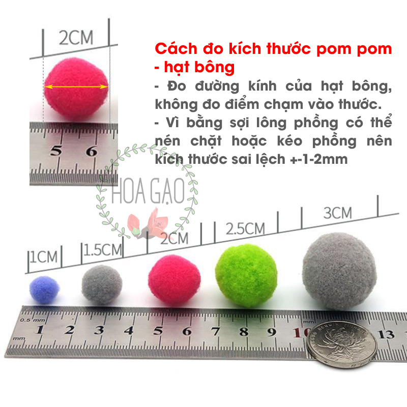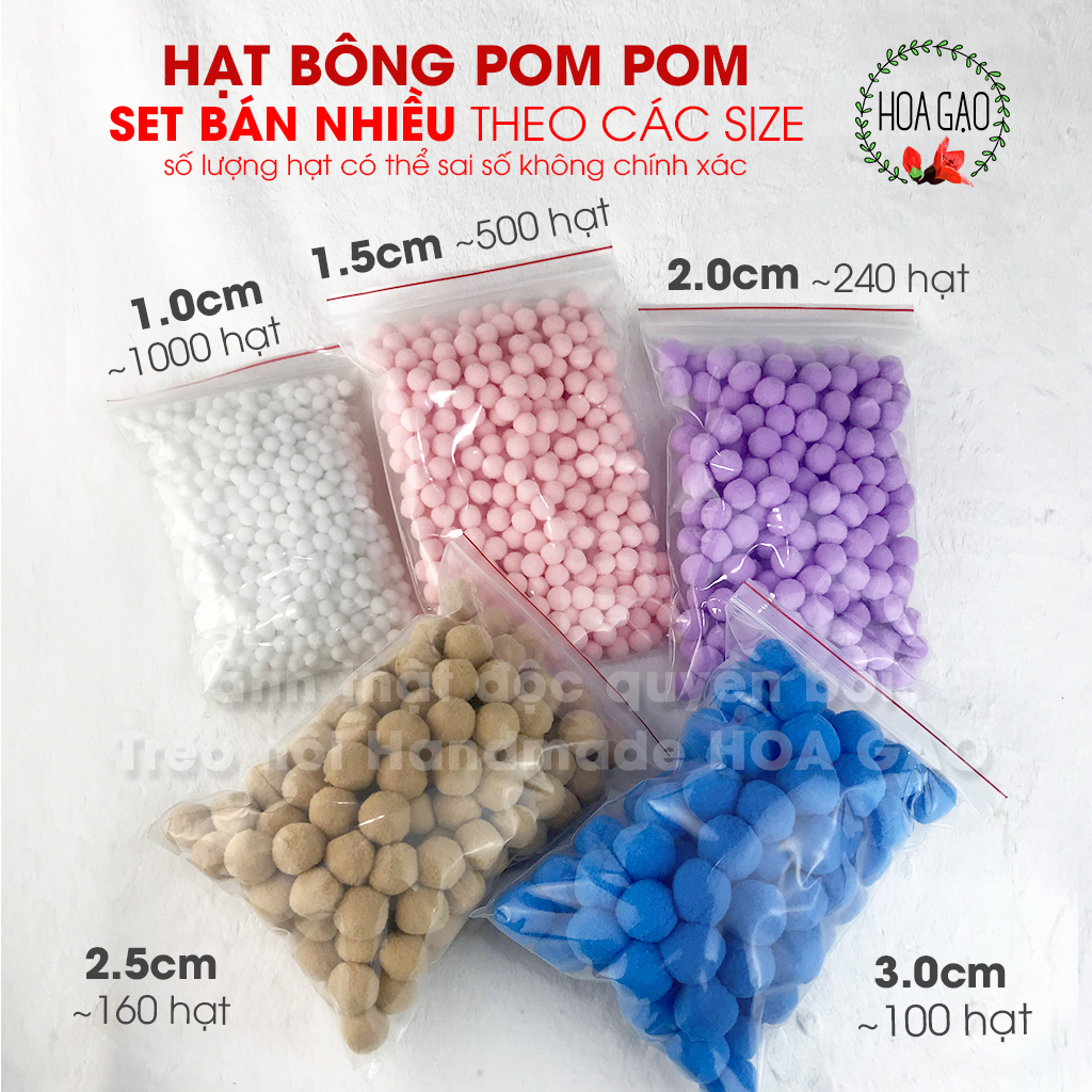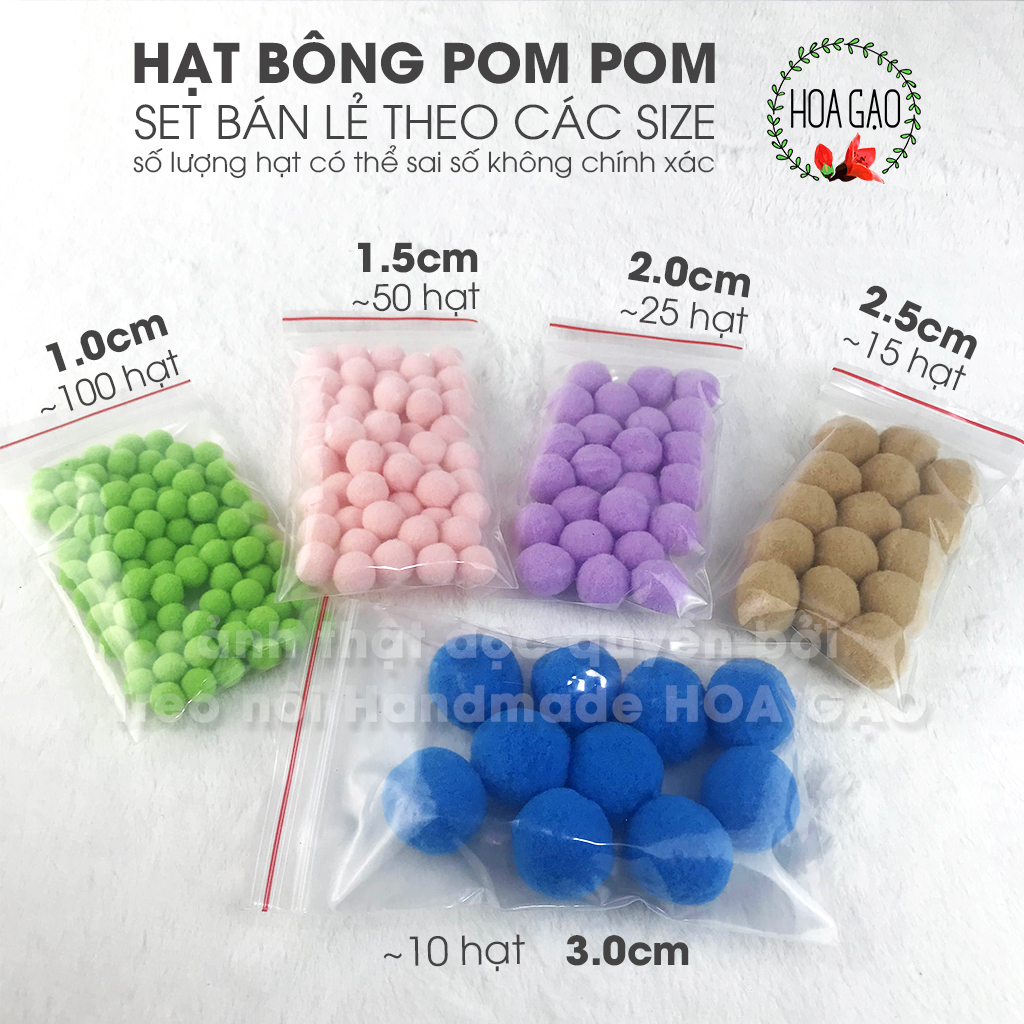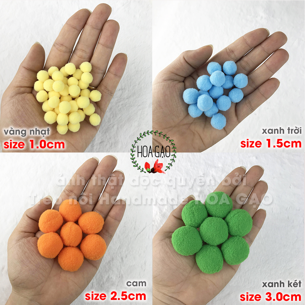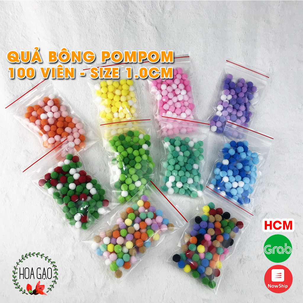 Quả bông pompom 100 viên 1.0cm trang trí noel giáng sinh Tết HOA GẠO GP10I handmade DIY pom pom đồ chơi giáo dục