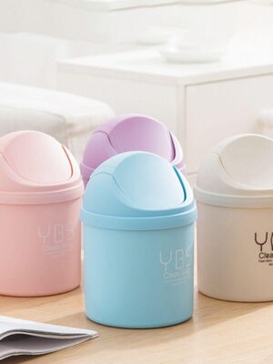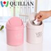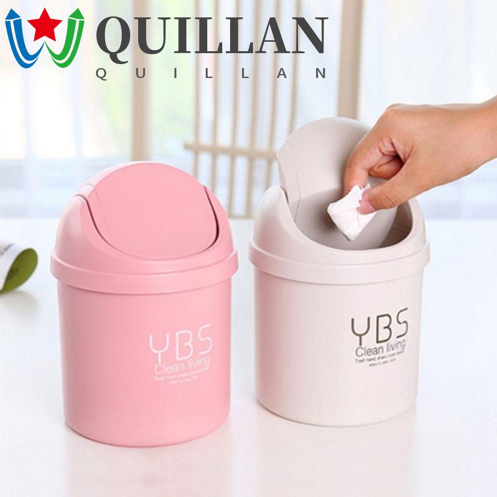 Quillan thùng rác để bàn mini màu kẹo dễ thương có nắp đồ dùng văn phòng dụng cụ làm sạch hộp lưu trữ gia đình thùng rác đa chức năng
