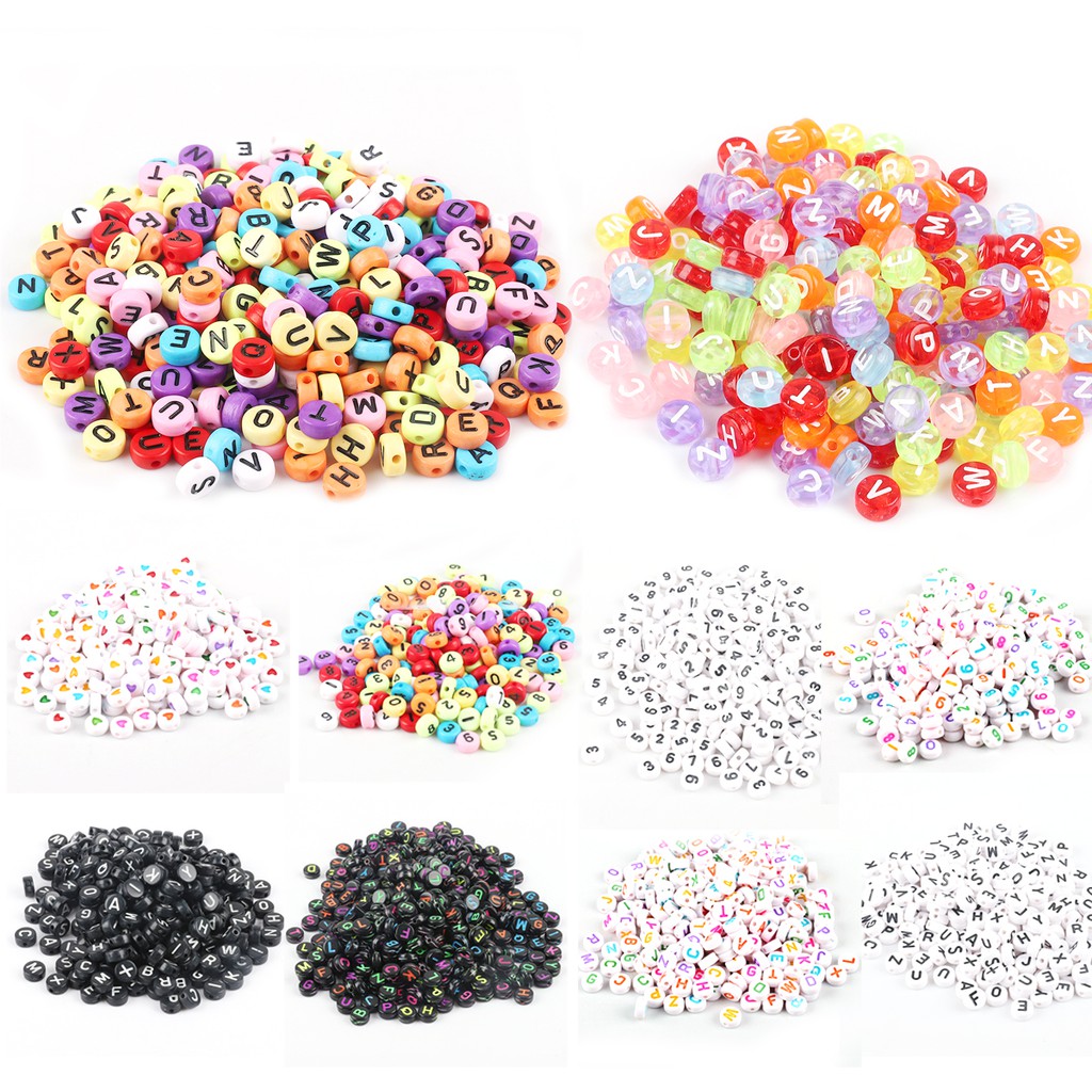 💖 Tên sản phẩm: Hạt xỏ acrylic in họa tiết chữ cái màu sắc ngẫu nhiên