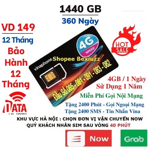 SIÊU SIM FREE 4G SIM VD89(D60G) , VD149 , F-Happy /12 Tháng Vinaphone