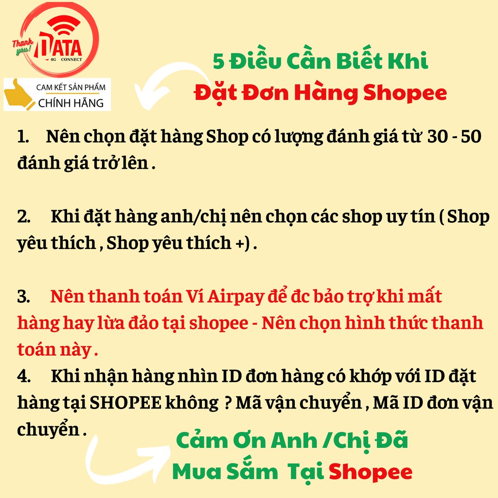 ⚠️ Đại lý Shop xin cam kết đã tuân thủ các quy định pháp luật hiện hành về việc đăng ký thông tin thuê bao từ BỘ TRUYỀN THÔNG đối với khách hàng khi mua sản phẩm sim VD149 , VD89 , FHappy ,U1500 bên Shop.