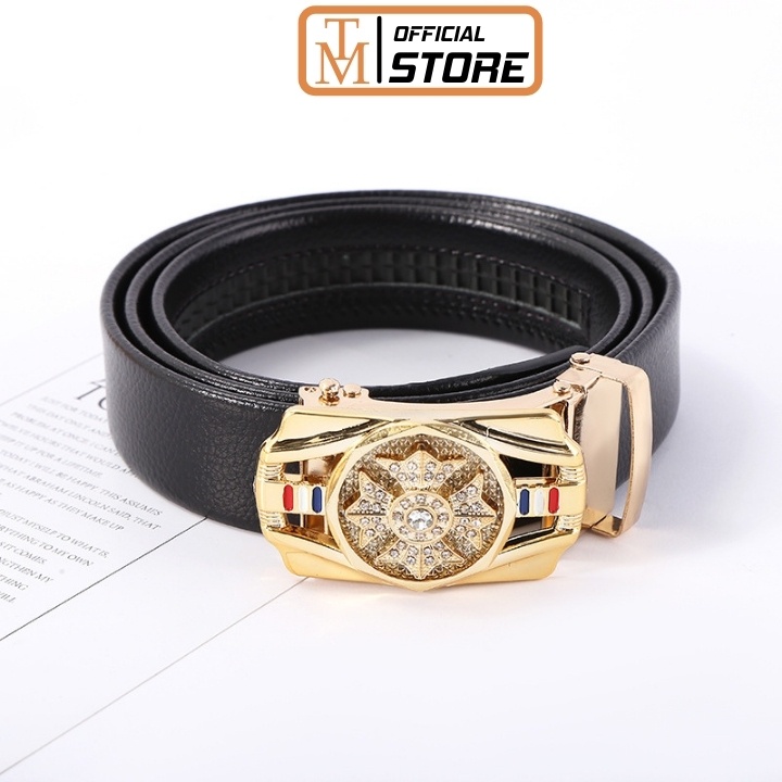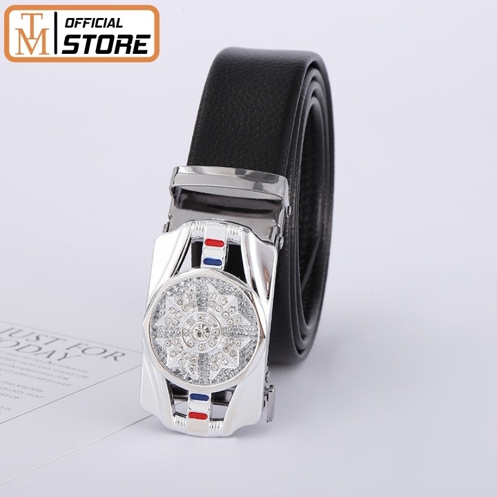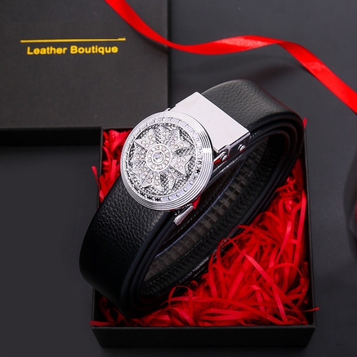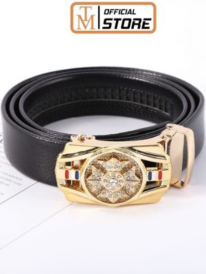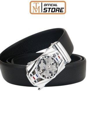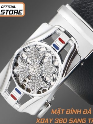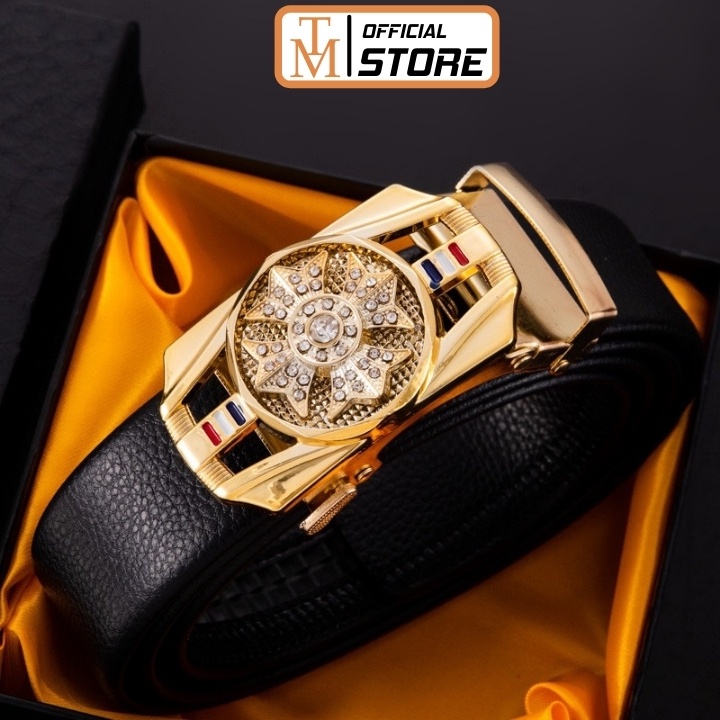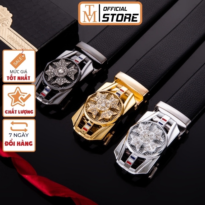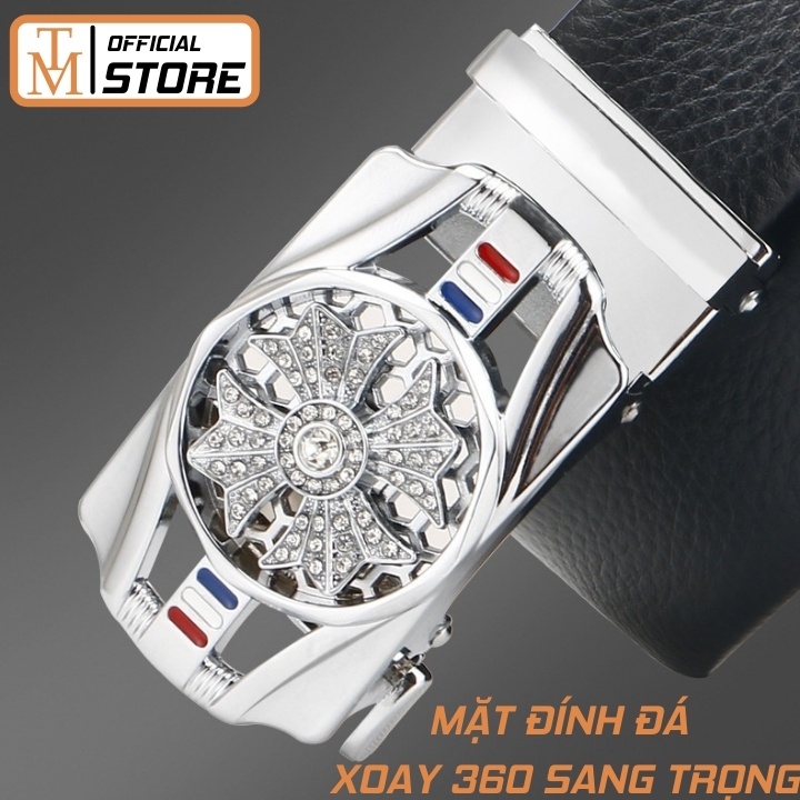 Thắt lưng nam da cao cấp, mặt đính đá xoay 360, khóa tự động mạ kim sang trọng TL23