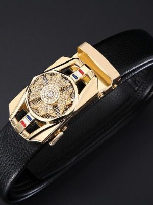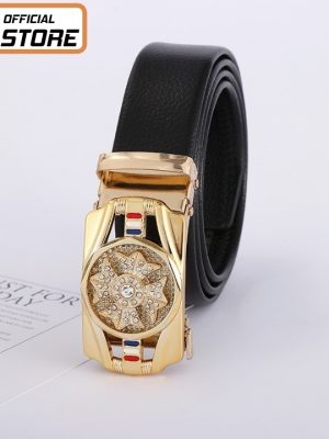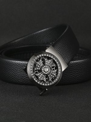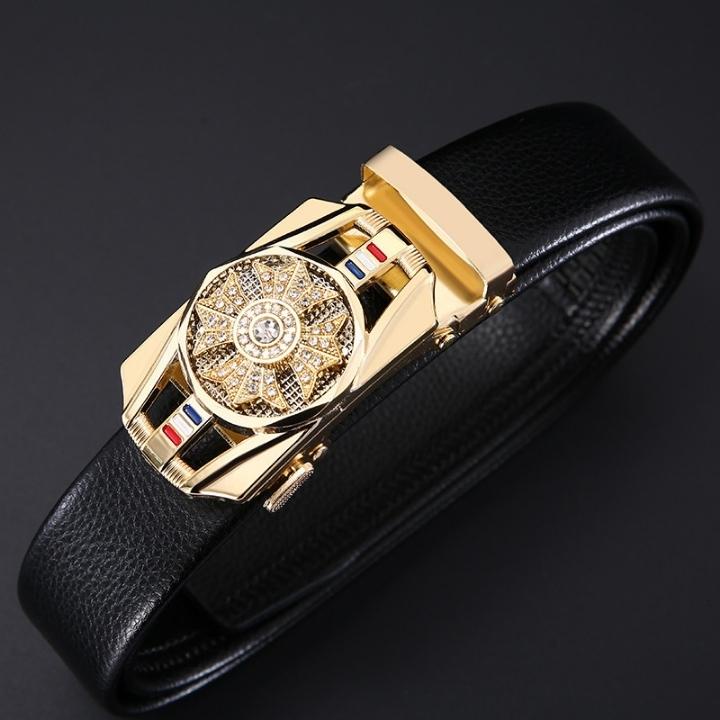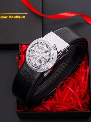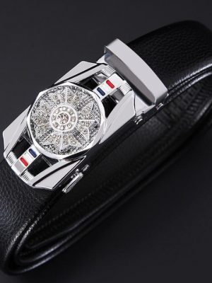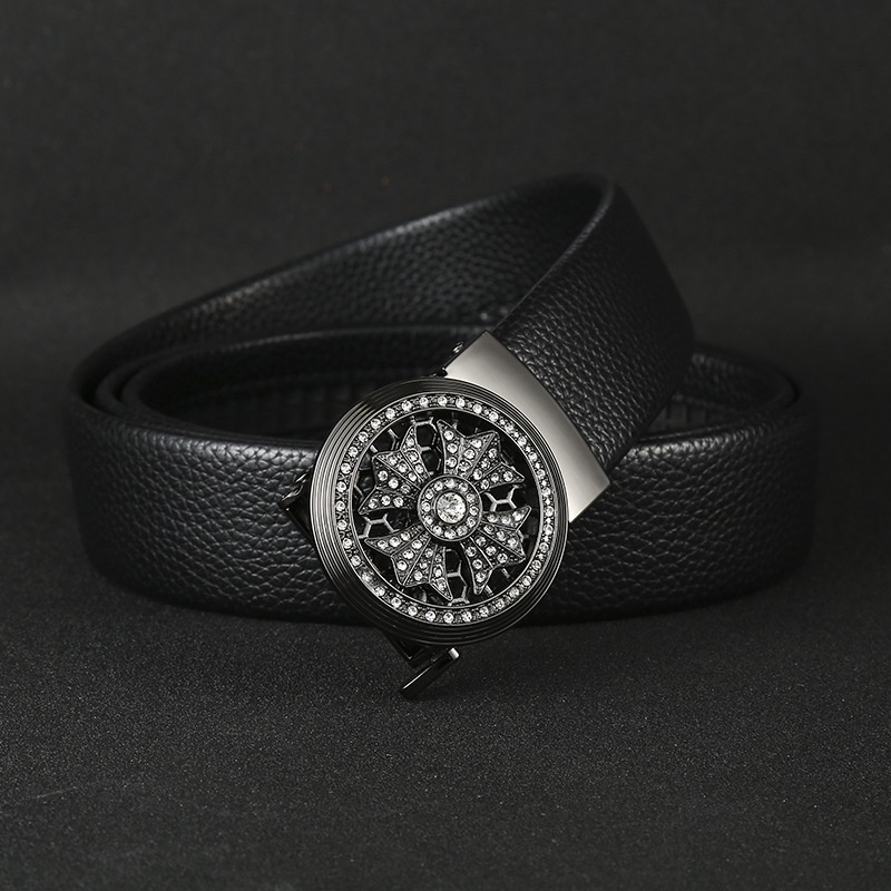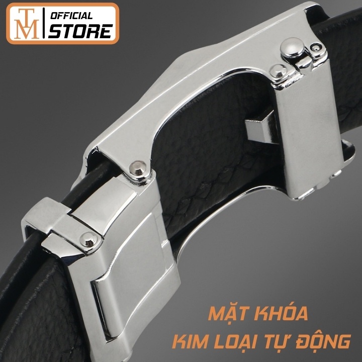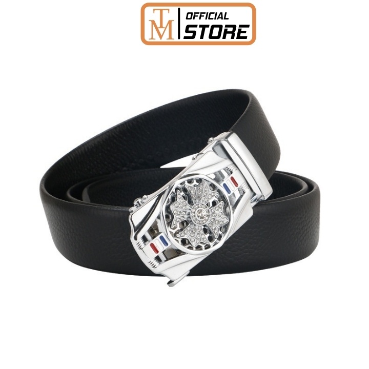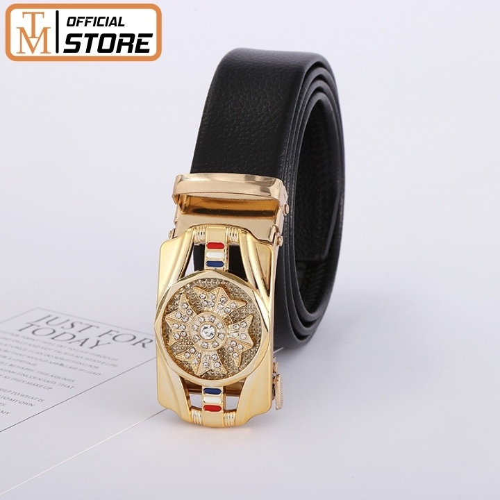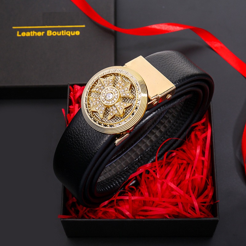 Thắt lưng nam da cao cấp, mặt đính đá xoay 360, khóa tự động mạ kim sang trọng TL23