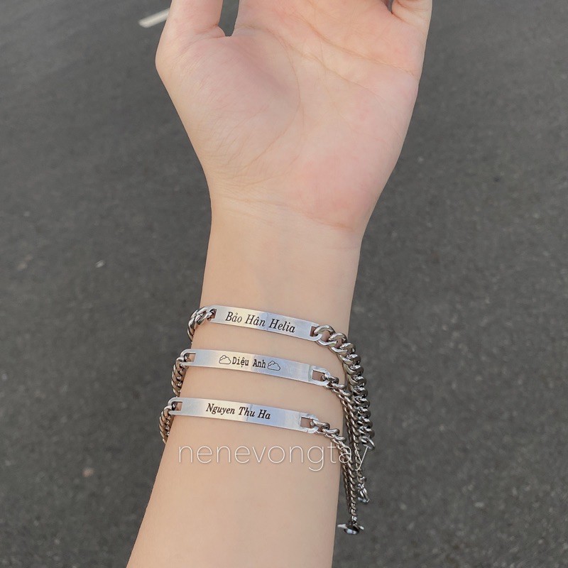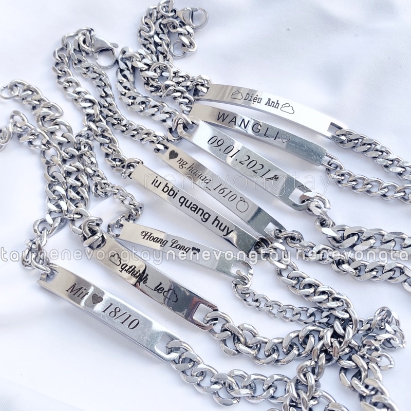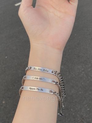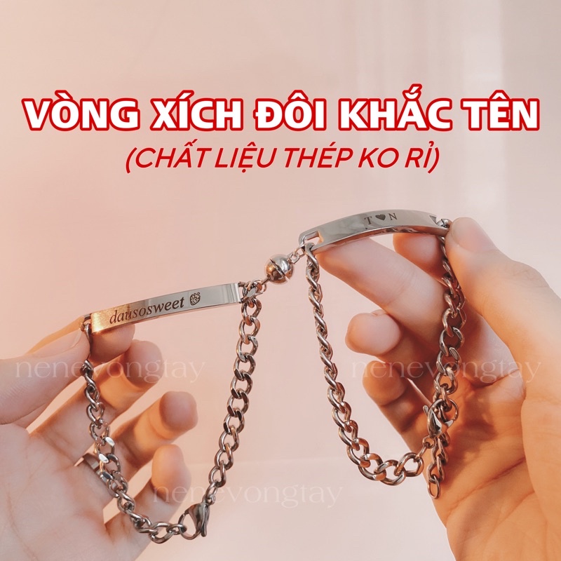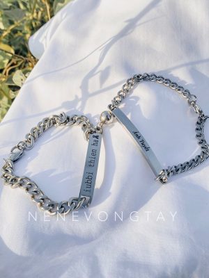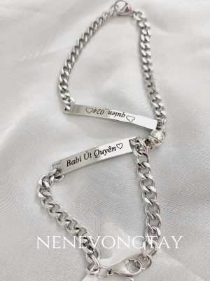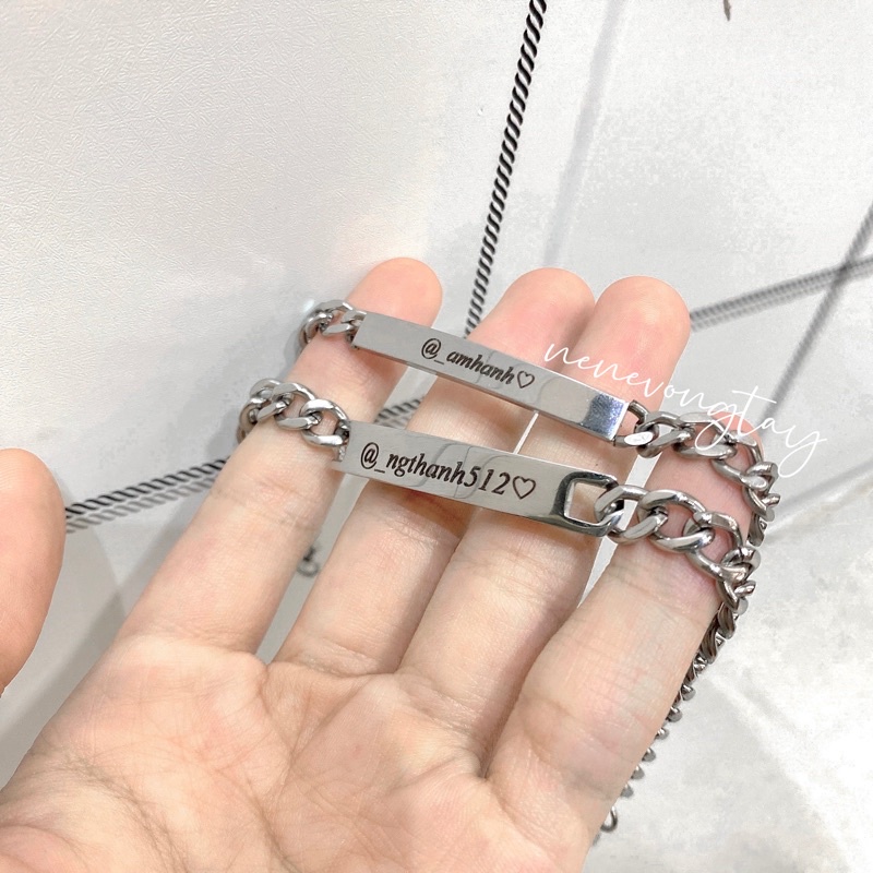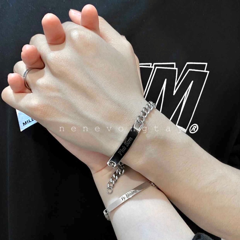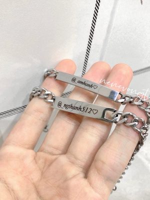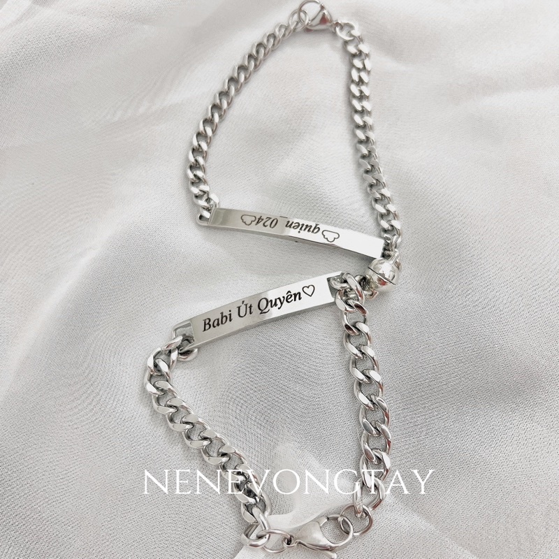 [THÉP KO RỈ] Vòng tay đôi bạch kim khắc tên theo yêu cầu (chưa kèm nam châm)