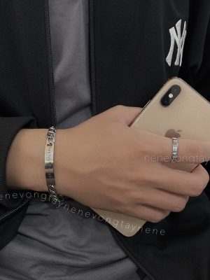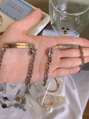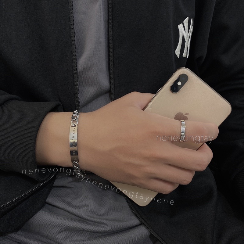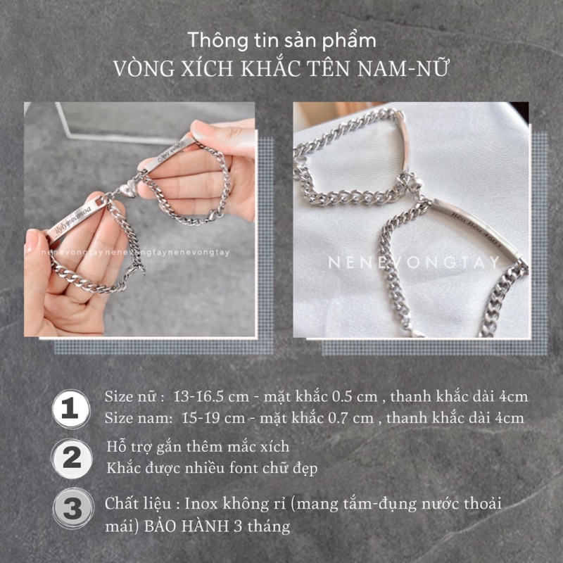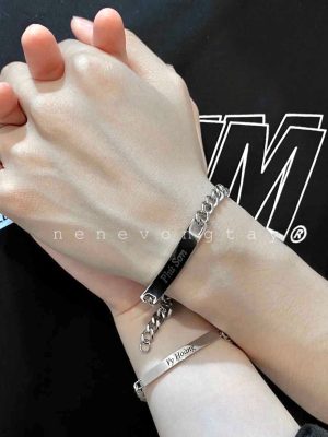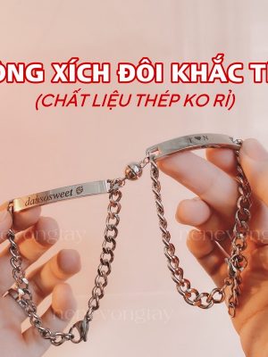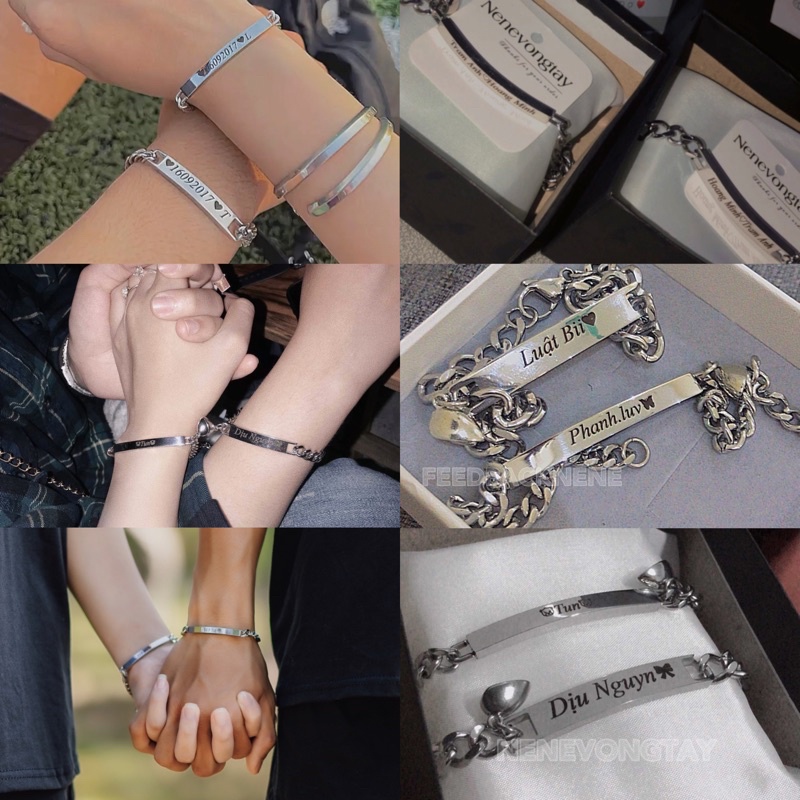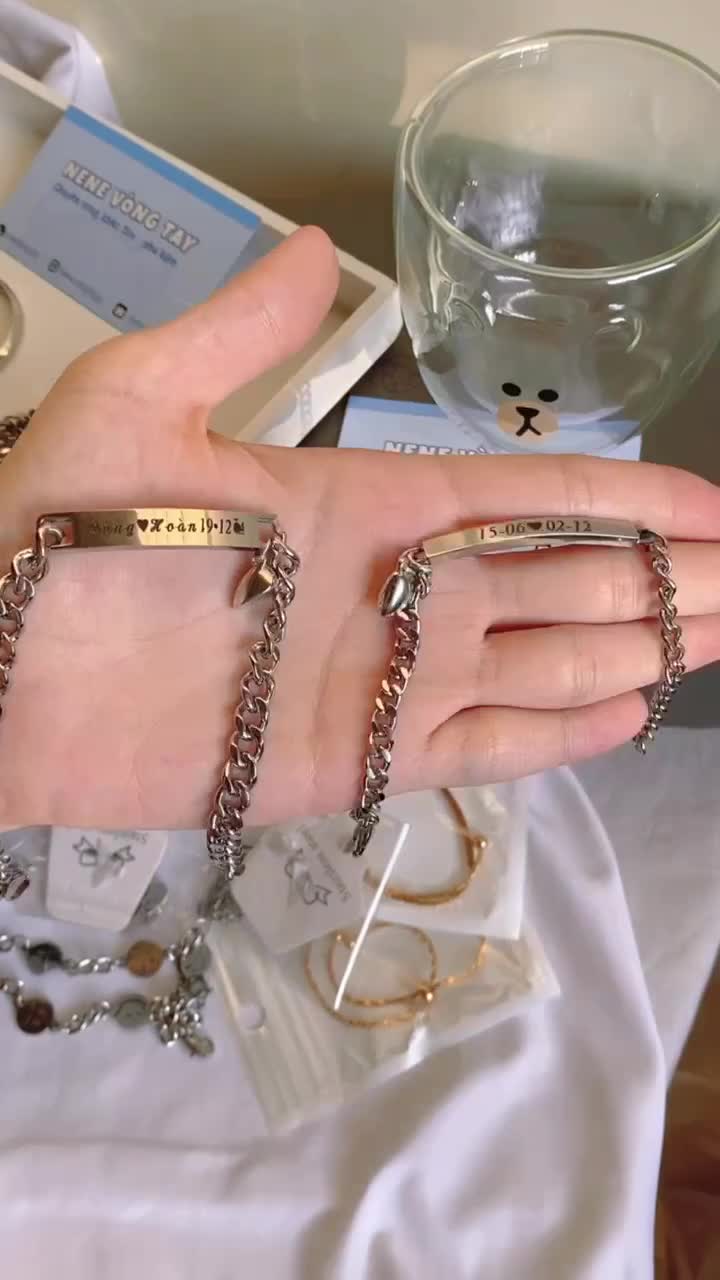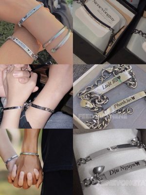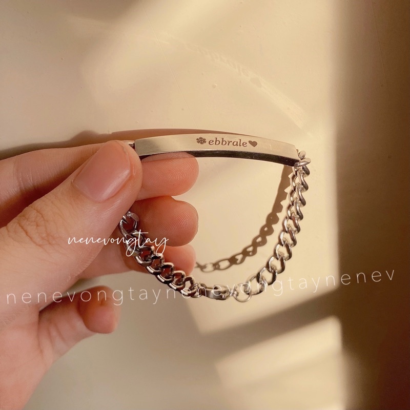 [THÉP KO RỈ] Vòng tay đôi bạch kim khắc tên theo yêu cầu (chưa kèm nam châm)