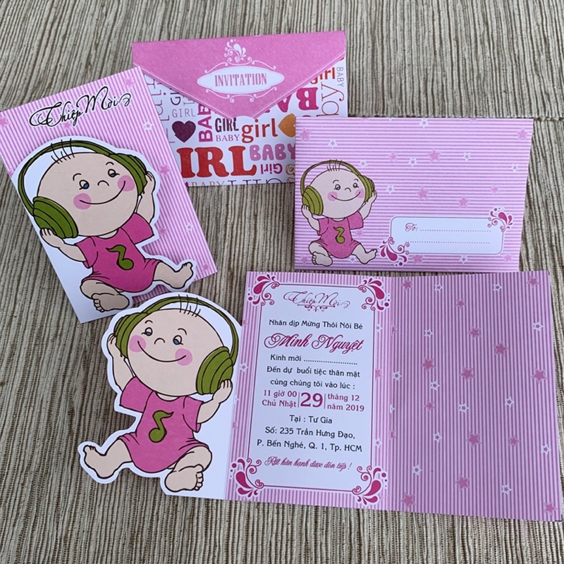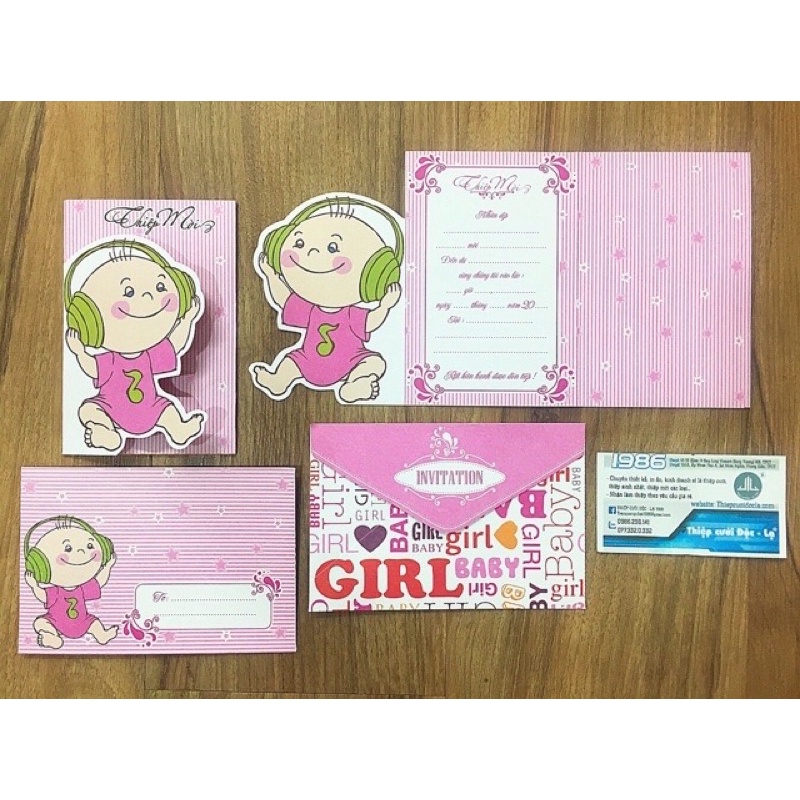 Thiệp Thôi nôi, sinh nhật bé gái (chỉ nhận in nội dung từ 30 thiệp trở lên)