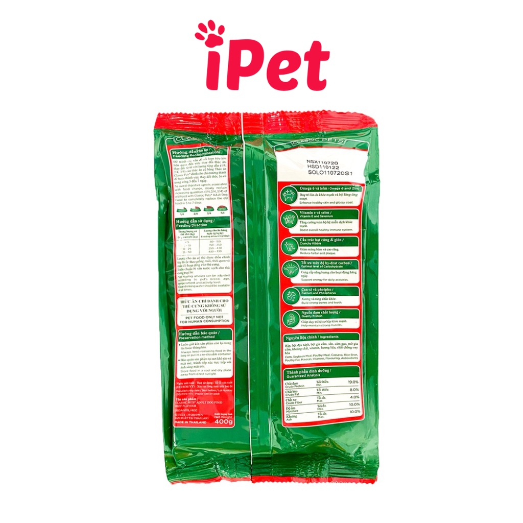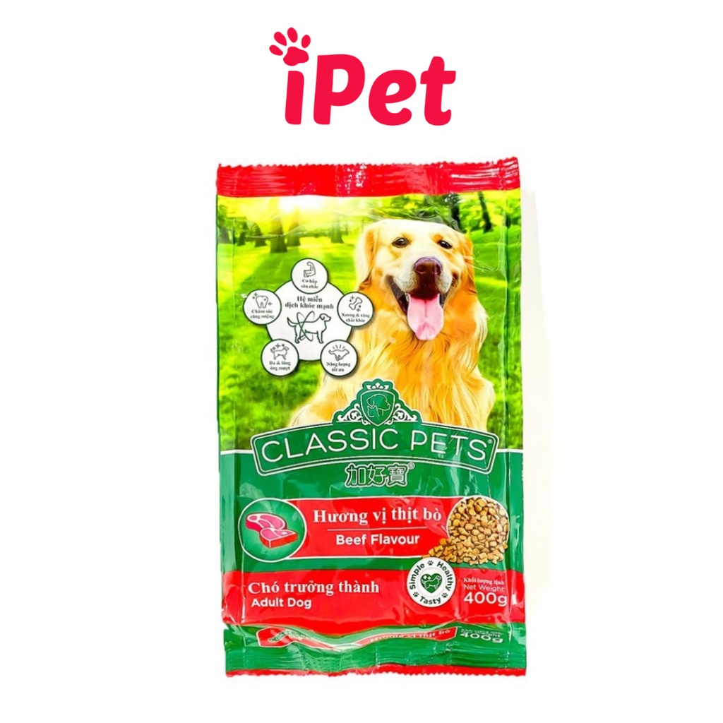 Thức Ăn Cho Chó Lớn, Đồ Ăn Hạt Khô Classic Adult Vị Thịt Bò 400g – iPet Shop