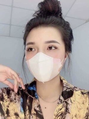 📍 Bước 4: Dùng 2 ngón tay phủ toàn bộ khẩu trang cho vừa vặn và sát với khuôn mặt của mình