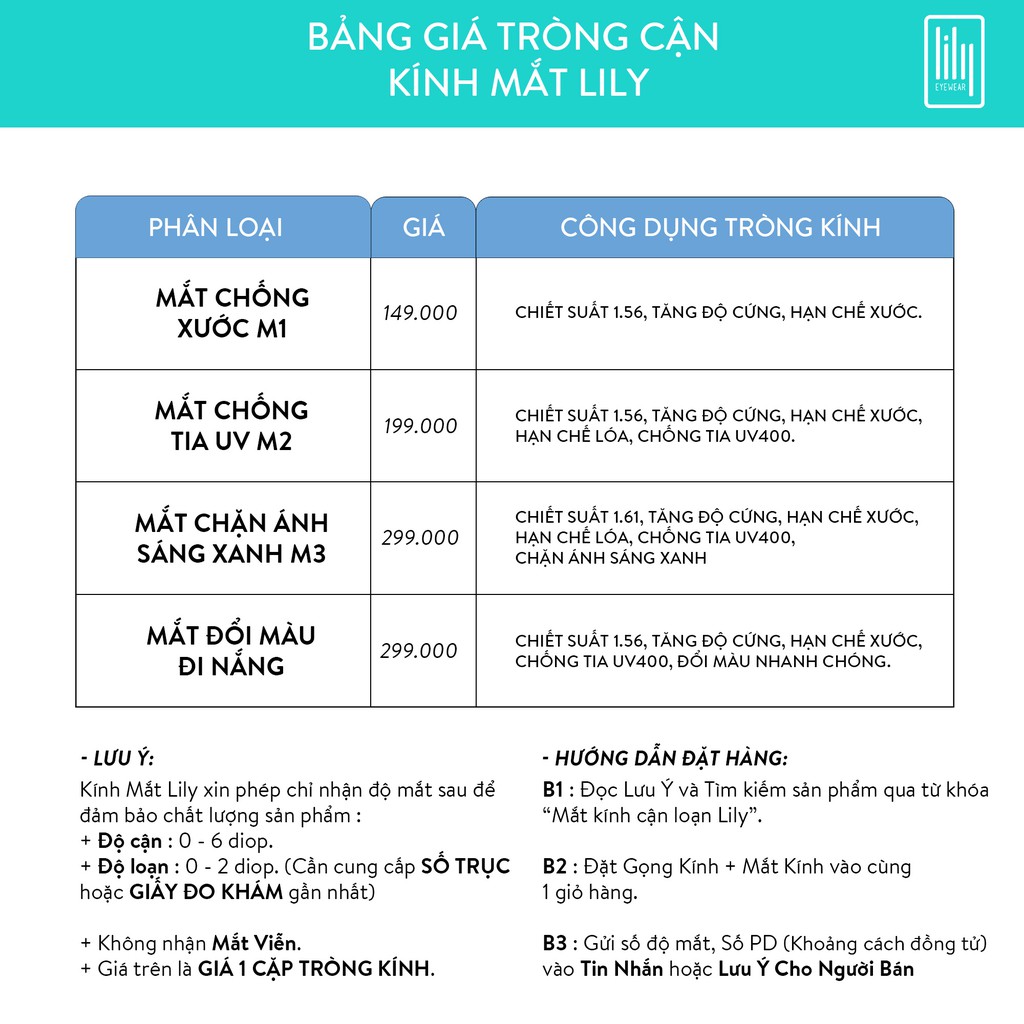 Tròng kính cận loạn có độ LILYEYEWEAR mắt kính chống ánh sáng xanh, đổi màu đi nắng chống tia UV400