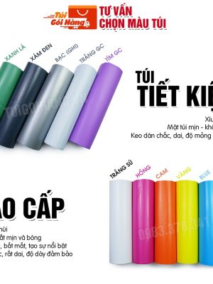 - Màu cao cấp: trắng sứ, hồng, cam, vàng, blue – làm từ 100% nhựa nguyên sinh, mặt túi có độ bóng mịn cao, sờ mặt túi có cảm giác mượt tay. Các màu này sẽ dày dặn hơn và dai hơn màu tiết kiệm, phù hợp gói các hàng nặng hơn.