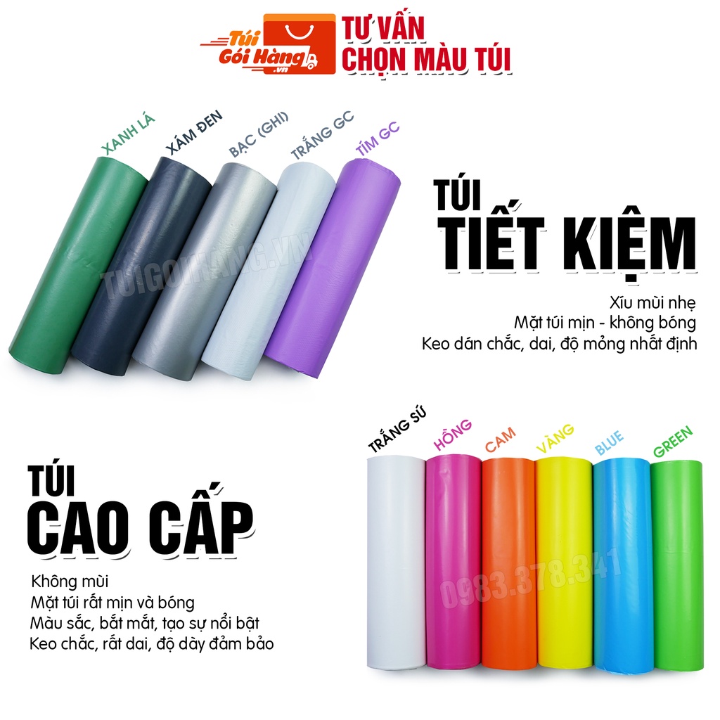 Nhìn chung độ dày, độ dai, độ chắc của keo niêm phong của các màu túi đều đảm bảo gói hàng COD. Giữa các màu sẽ có sự khác nhau chính dưới đây: