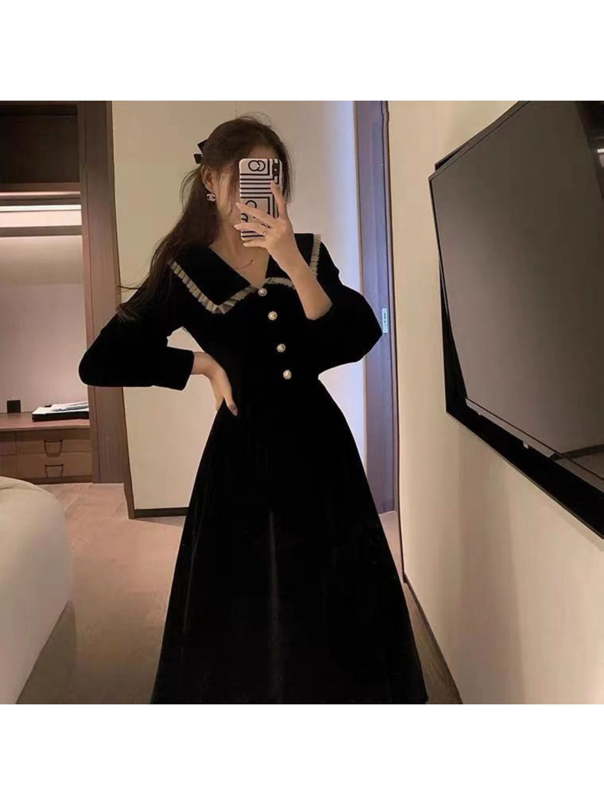 Váy nữ cổ v thiết kế tay phồng dáng dài, Đầm thời trang công sở cao cấp dự tiệc sang trọng V108