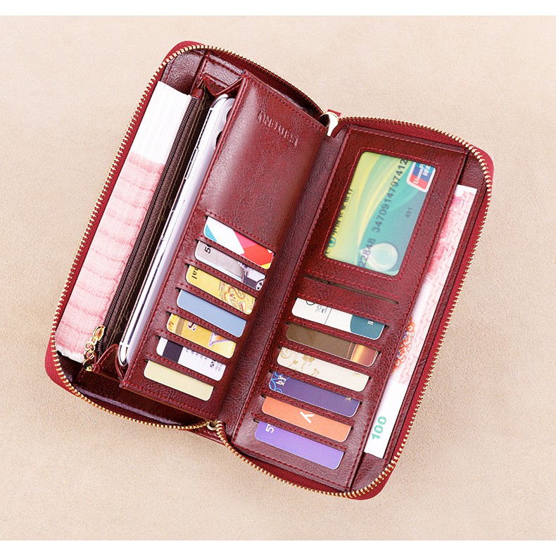+ Trọng lượng: 230 gr Cấu trúc: 13 ngăn thẻ card, 1 ngăn ảnh, 2 ngăn dài để tiền, 1 ngăn điện thoại, 1 ngăn có dây kéo khóa, 1 ngăn giữa