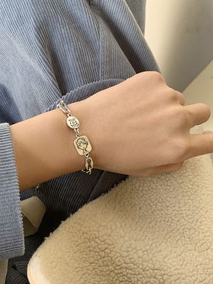 Vòng Tay Họa Tiết Chữ Thời Trang Hàn Quốc Đơn Giản Thanh Lịch Cho Nữ